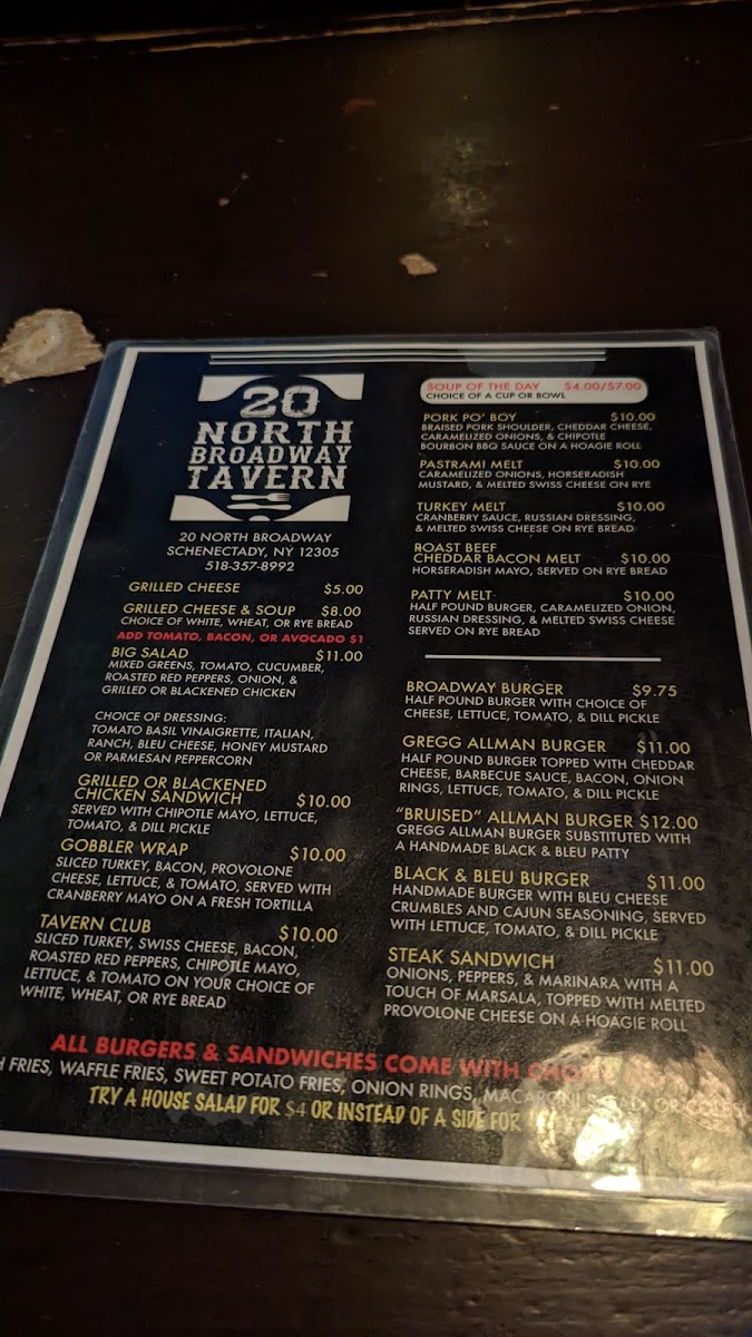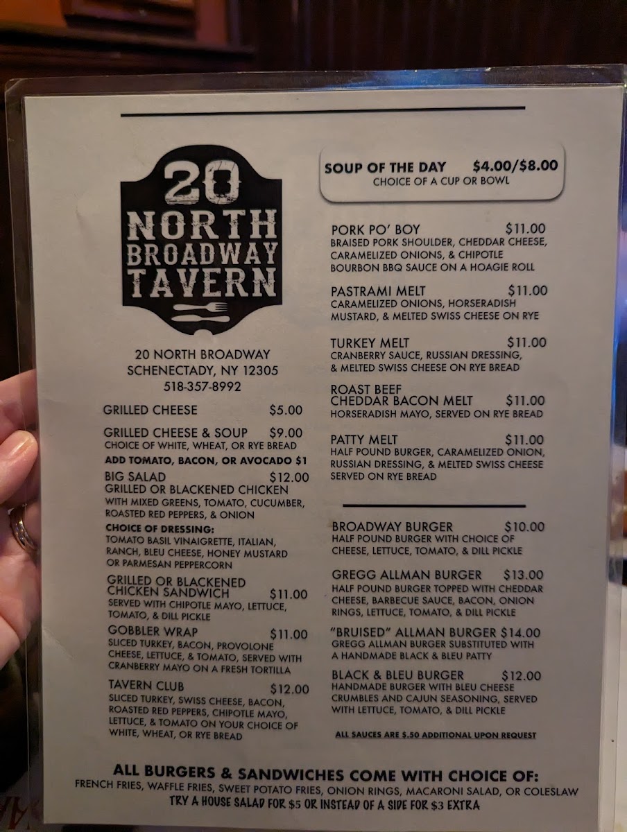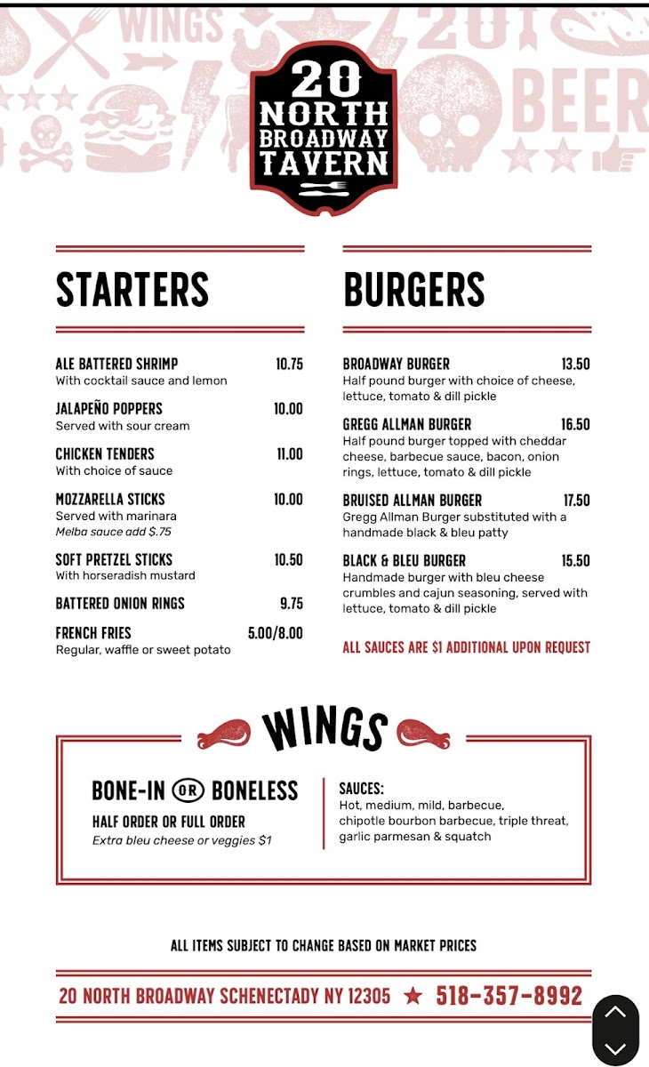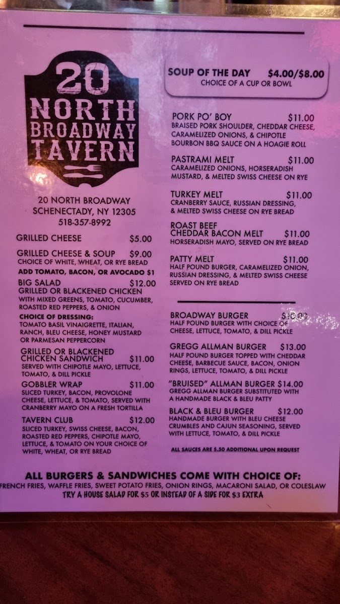 20 North Broadway Tavern Menu